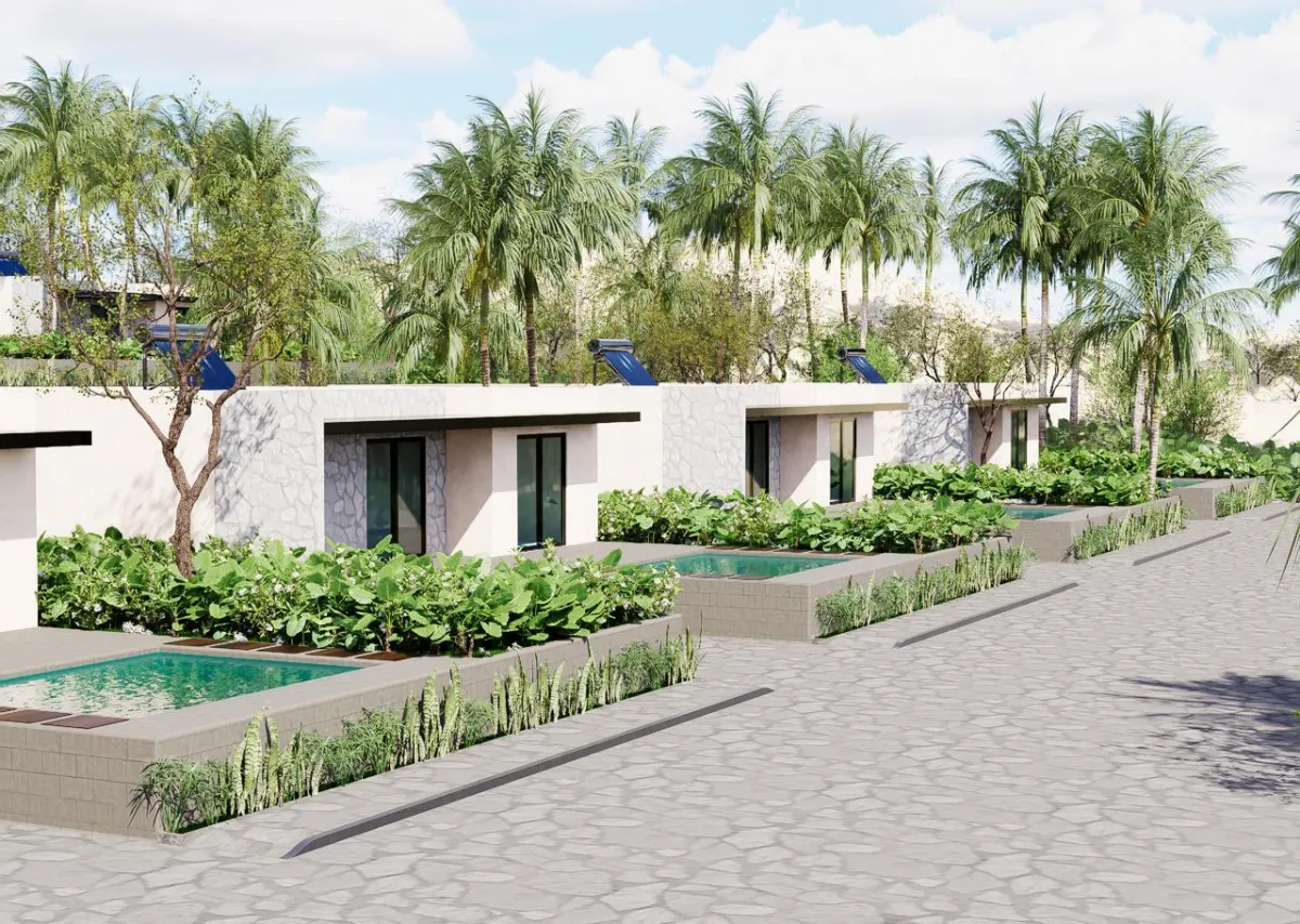 comienza desde los 50cm hasta llegar a 1.50 cm. esto es de extremo a extremo, 3 recamaras, 2 con vista a la alberca, toda la casa tendrá equipamiento y materiales adaptados para vivir en un ambiente único y exclusivo con la comodidad y la seguridad de Gran Yoliztli.